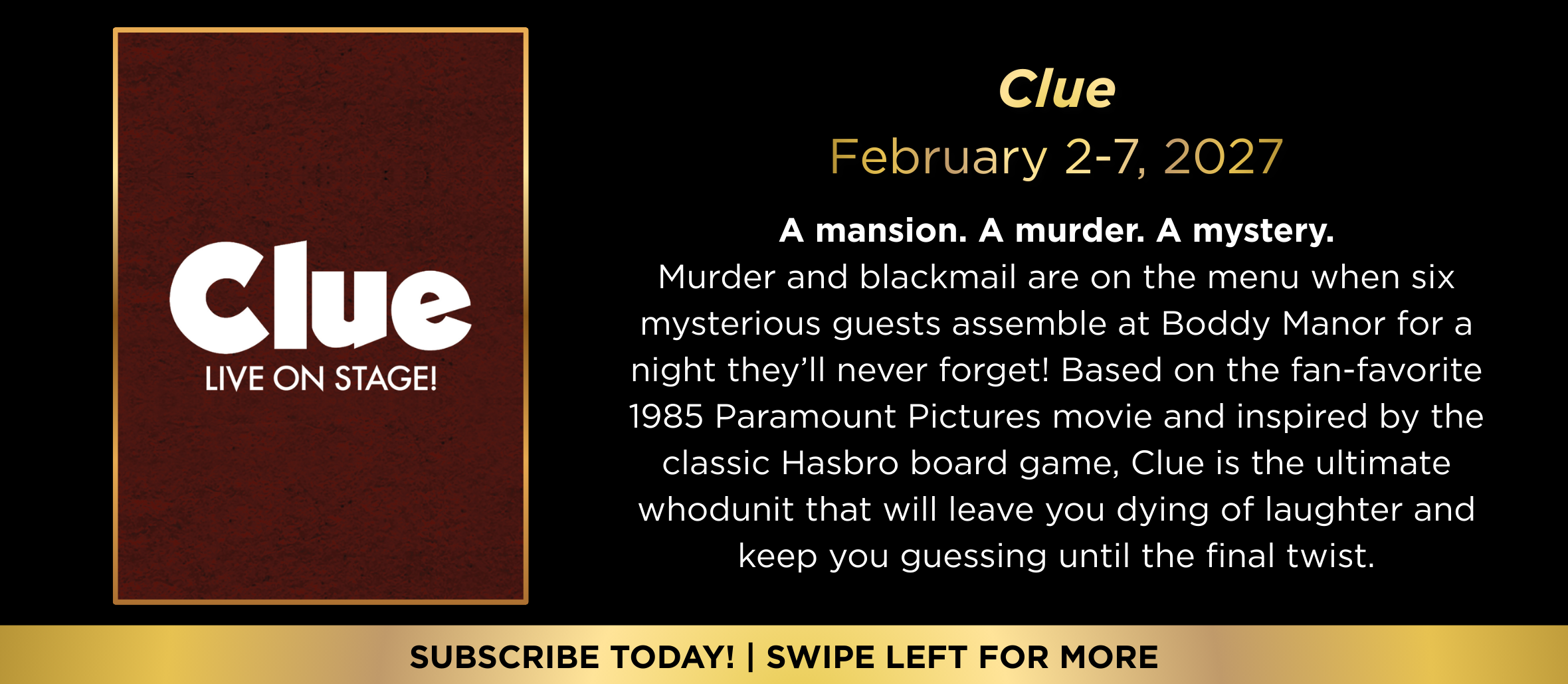 Please note: 'Twas the Night Before... by Cirque du Soleil is not included in the 2026-27 Season Ticket package.
